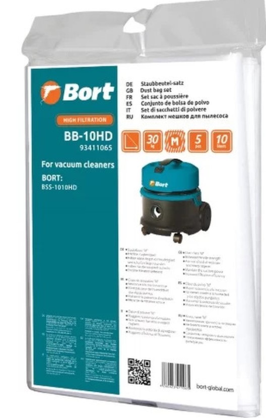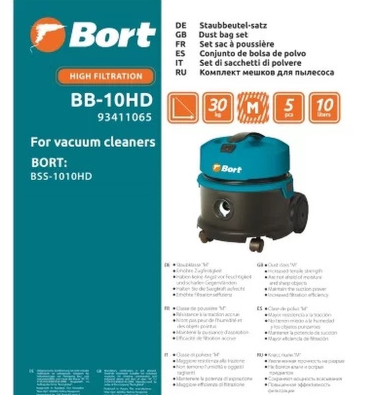 Пылесборник Bort BB-10HD представляет собой прочный мешок, в который собирается пыль и бытовой мусор во время уборки помещений. Совместим с пылесосами Bort BSS-1010HD. Способен выдерживать большие нагрузки. Во время эксплуатации не деформируется. Пылесборник с классом фильтрации "М" выполнен из прочной многослойной синтетической ткани повышенной плотности и дополнен креплением из картона. Он очень прост в установке, легко демонтируется. Подходит для сбора не только бытовой пыли, но и влажного, а также строительного мусора (крошки цемента, металлической стружки, щепок).
