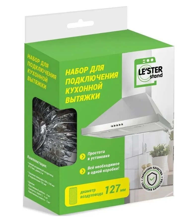 Набор для подключения кухонной вытяжки является оптимальным решением для соединения с вентиляционным отверстием. Комплект поставляется вместе со специальными крепежами и хомутами, с помощью которых осуществляется установка гофрированной трубы. Универсальное изделие предназначено для использования с вытяжками различных моделей. Для изготовления комплектующих набора используются высококачественные материалы, которые характеризуются значительной прочностью и не подвержены негативному воздействию внешних факторов. Благодаря этому изделие устойчиво к износу и механическим повреждениям и может эксплуатироваться на протяжении продолжительного периода времени.