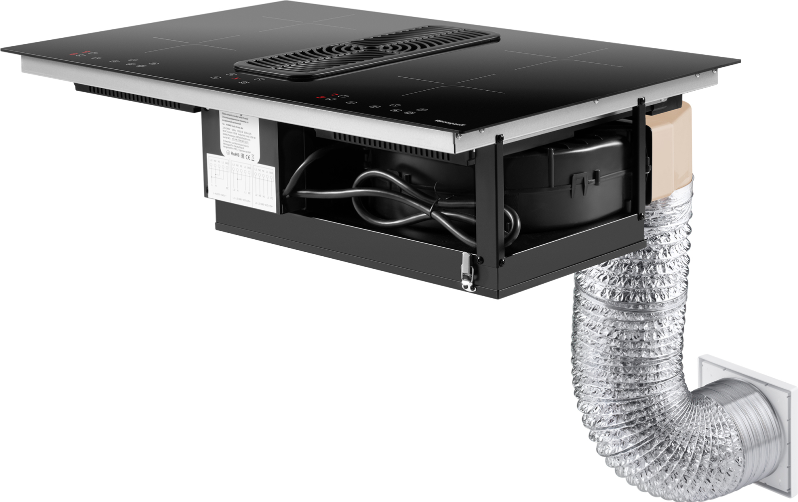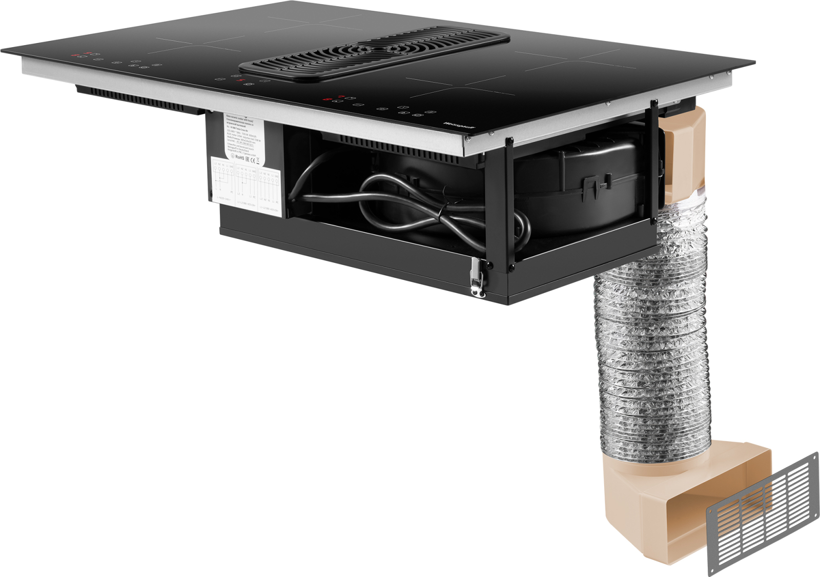 Работа в режиме рециркуляции - используйте вашу варочную панель с вытяжкой без необходимости дополнительного проектирования элементов отвода воздуха из помещения, а также в ситуации отсутствия системы центральной вентиляции!