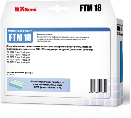 Моторный фильтр FTM 18 для PHILIPS FILTERO 05869 подходит для пылесосов PHILIPS FC9728 Power Pro Expert, PHILIPS FC9732 Power Pro Expert, PHILIPS FC9733 Power Pro Expert, PHILIPS FC9734 Power Pro Expert, PHILIPS FC9735 Power Pro Expert.