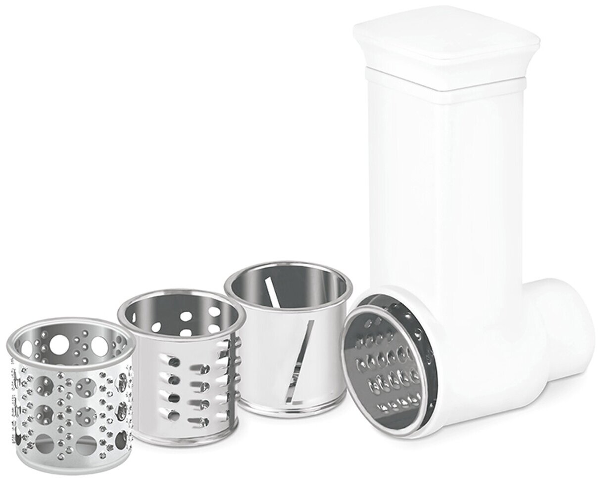 Данные аксессуары выполняют 4 основных задачи: нарезка, мелкая терка, крупная терка и приготовление драников.