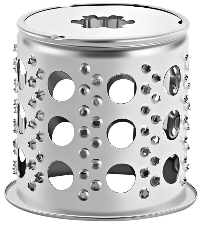 Дополнительный комплект насадок AR-3801 для мясорубок Aresa AR-2101 и AR-2102 состоит из 4 сменных металлических терок и удобного толкателя.