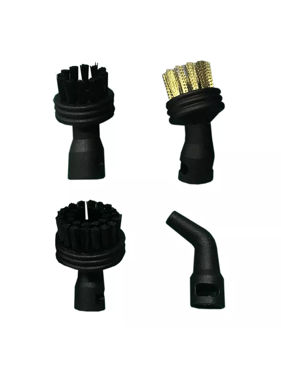Комплектация: Латунная щетка — 1 шт. Большая круглая нейлоновая щетка — 1 шт. Маленькая круглая нейлоновая щетка — 1 шт. Угловая насадка — 1 шт.