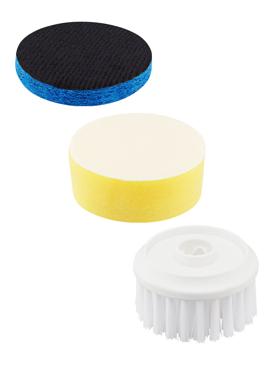 Круглая насадка – 1 шт. Жесткая губка – 1 шт. Мягкая губка – 1 шт.