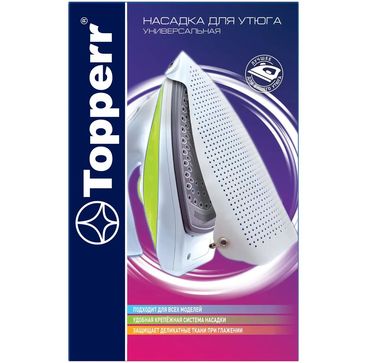 Насадка для утюга Topperr 1303 IR2 защищает деликатные ткани от лоснящегося эффекта и появления различных пятен, а также от сгорания при глажении. Безопасна для вышивки и аппликаций. Предохраняет подошву утюга от появления на ней загрязнений и царапин. Идеально подходит для утюгов с подачей пара. Специальные отверстия в насадке обеспечивают эффективное распределение пара по всей площади прикосновения утюга с тканью. Обеспечивает прекрасное скольжение утюга по тканям. Подходит для всех марок и моделей утюгов.