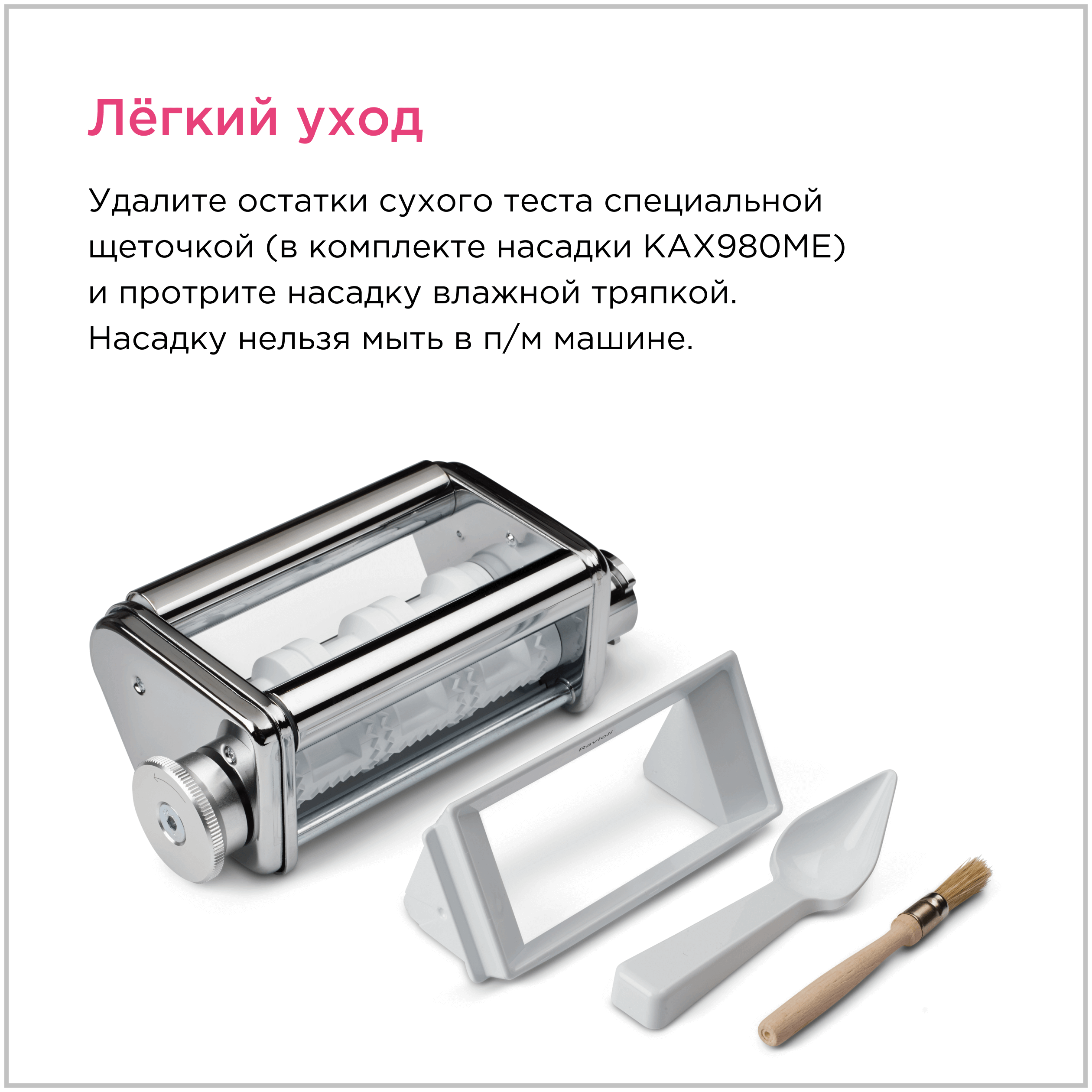 Настоящую пасту можно готовить дома с помощью перфорированной насадки Kenwood KAX93.A0ME. Поверхность получаемых макарон отличается грубой текстурой, которая обеспечивает лучшее впитывание соуса или масла.
