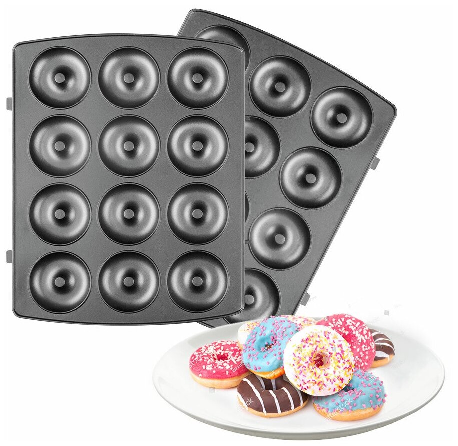 Панели позволяют за одну закладку теста выпечь 12 аппетитных пончиков, которые перед подачей на стол можно украсить глазурью, кондитерской помадкой, шоколадом или любым сладким соусом. На панелях также удачно получаются пряники и печенье.