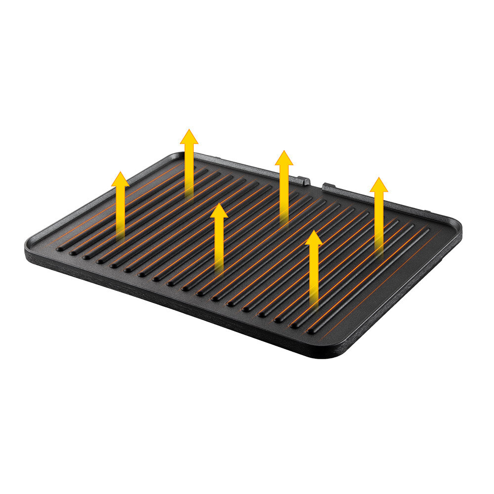 RGP-04 изготовлена из прочного металла. Панель долговечна и надежна, не деформируется при высокой температуре и устойчива к механическим повреждениям. Благодаря антипригарному покрытию к панели не прилипают ингредиенты, а после приготовления аксессуар легко очищается. Мыть панель можно под проточной водой с помощью обычных моющих средств или в посудомоечной машине.