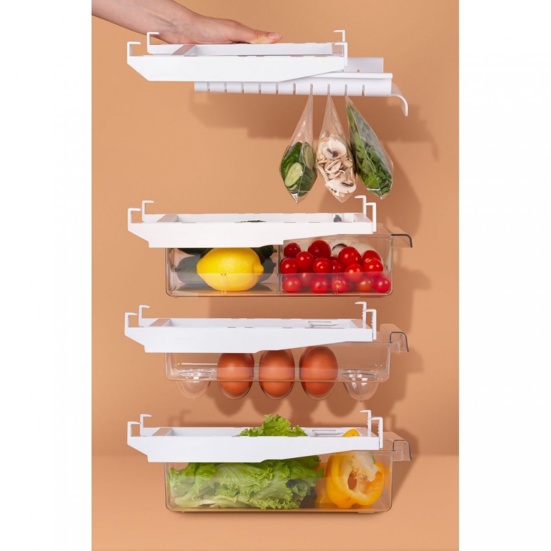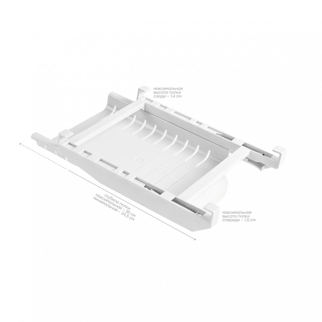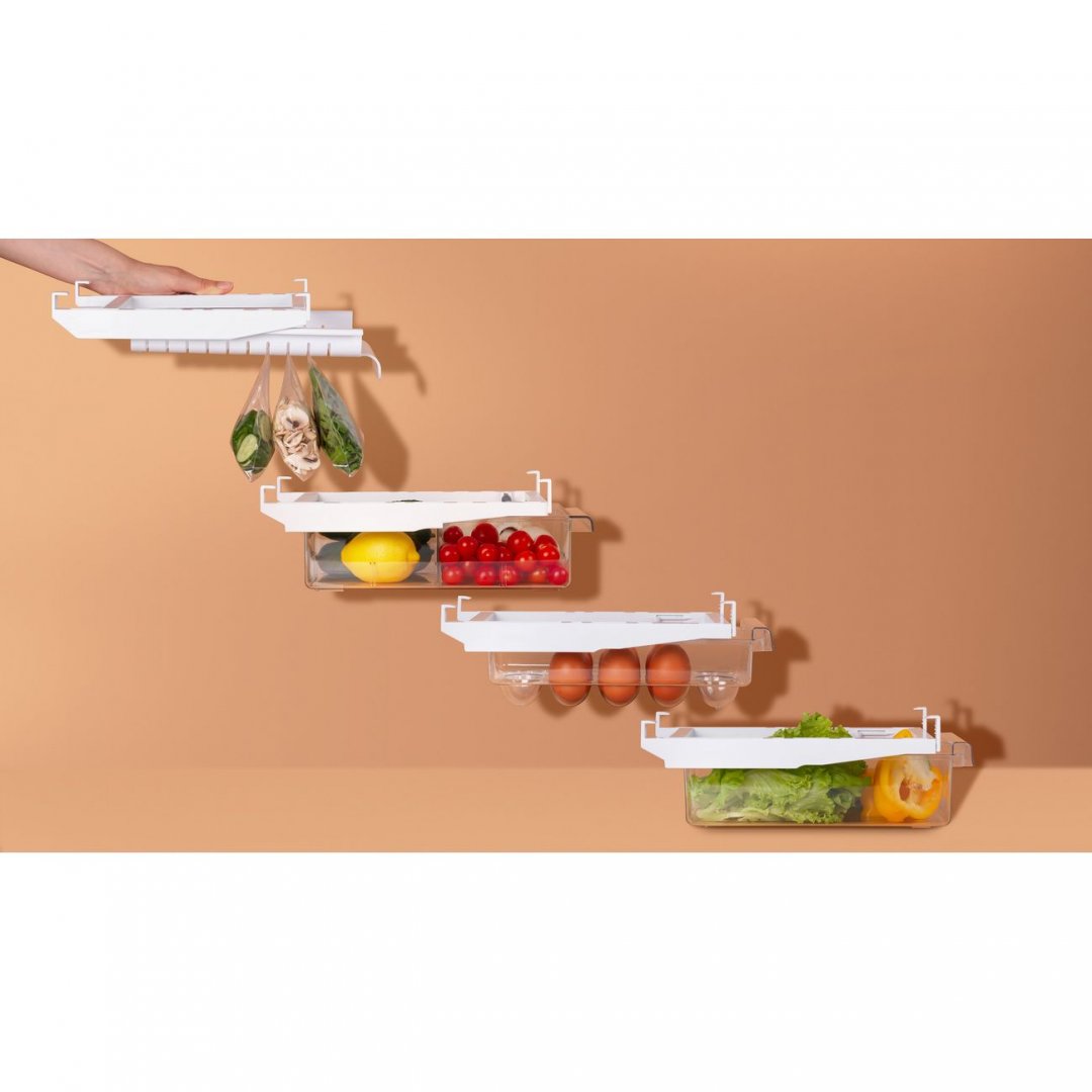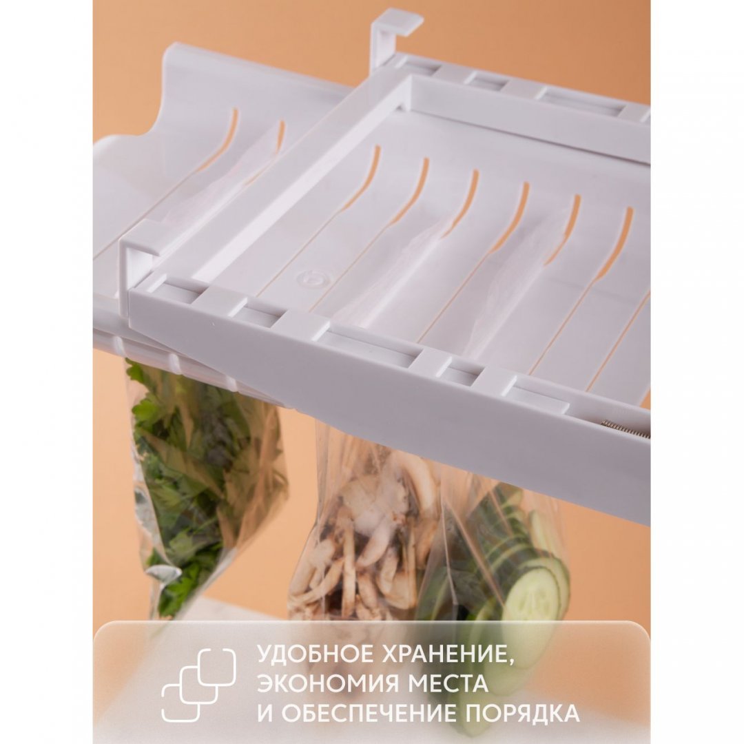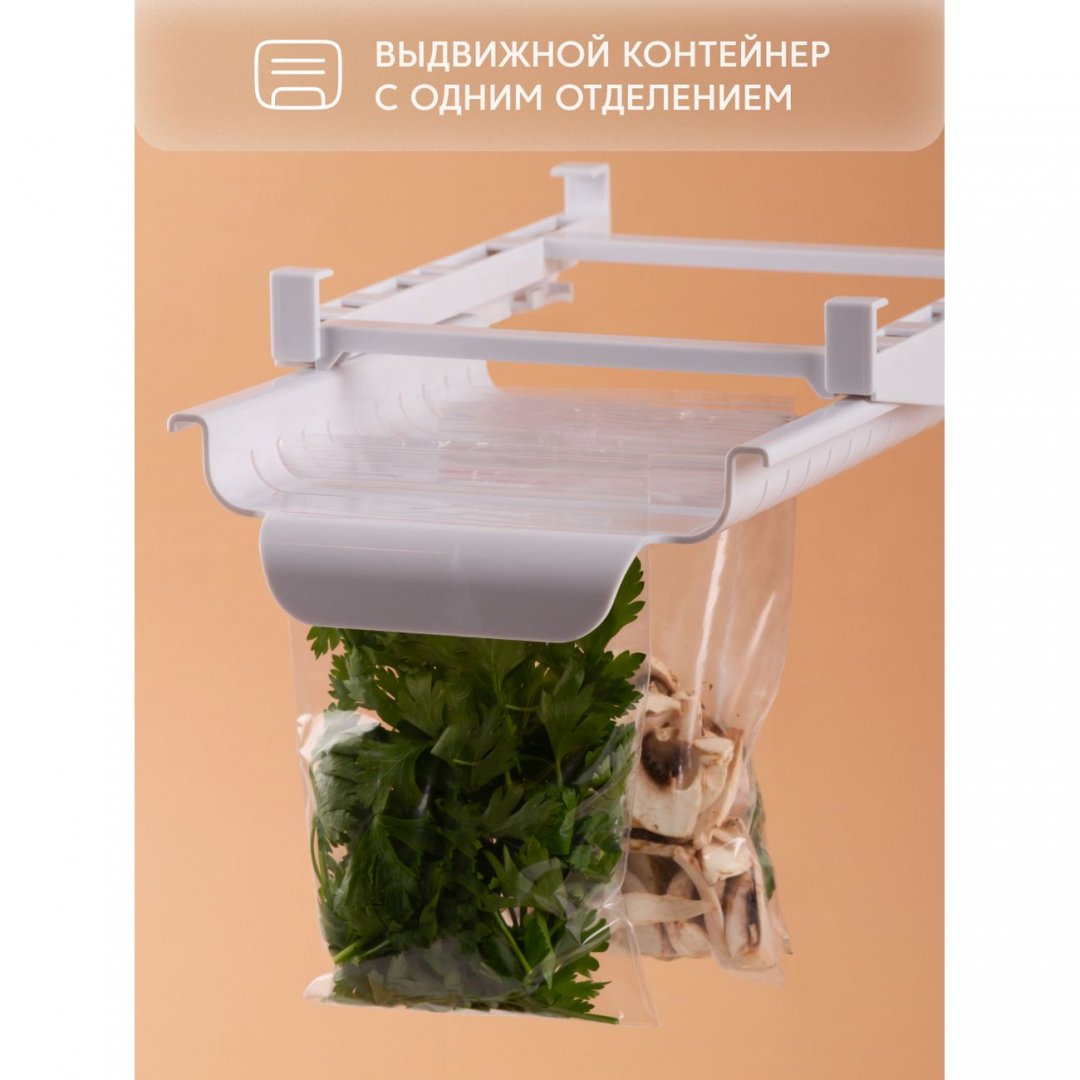 Подвесной держатель для пакетов с застежкой Rombica myKitchen Shelf RSO-001 помогает экономить место на кухне. Изделие можно использовать для хранения пакетов, оборудованных застежкой типа зип-лок. Выдвижная конструкция обеспечивает дополнительное удобство в процессе эксплуатации. Для изготовления модели производитель применяет пластик высокого качества. К особенностям материала относятся прочность, устойчивость к изнашиванию и механическому воздействию. Держатель способен выдерживать высокую нагрузку без повреждений, что позволяет хранить в пакетах большое количество овощей, зелени фруктов, грибов, сыра, ветчины и снеков.