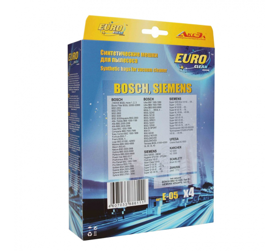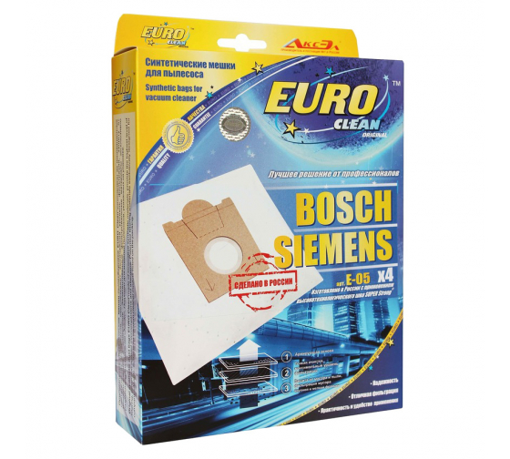 Мешок-пылесборник EURO CLEAN E-05/4 изготовлен из трех слоев синтетических нетканых материалов. Внутренний слой обеспечивает фильтрацию мусора крупной и мелкой фракции. Средний уровень необходим для тонкой очистки. Наружный слой придает прочность всей конструкции. Это одноразовый пылесборник, который заменяют по мере заполнения.