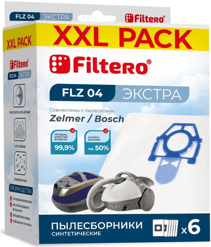 Мешки-пылесборники Filtero FLZ 04 XXL Pack Экстра, 6 штук.