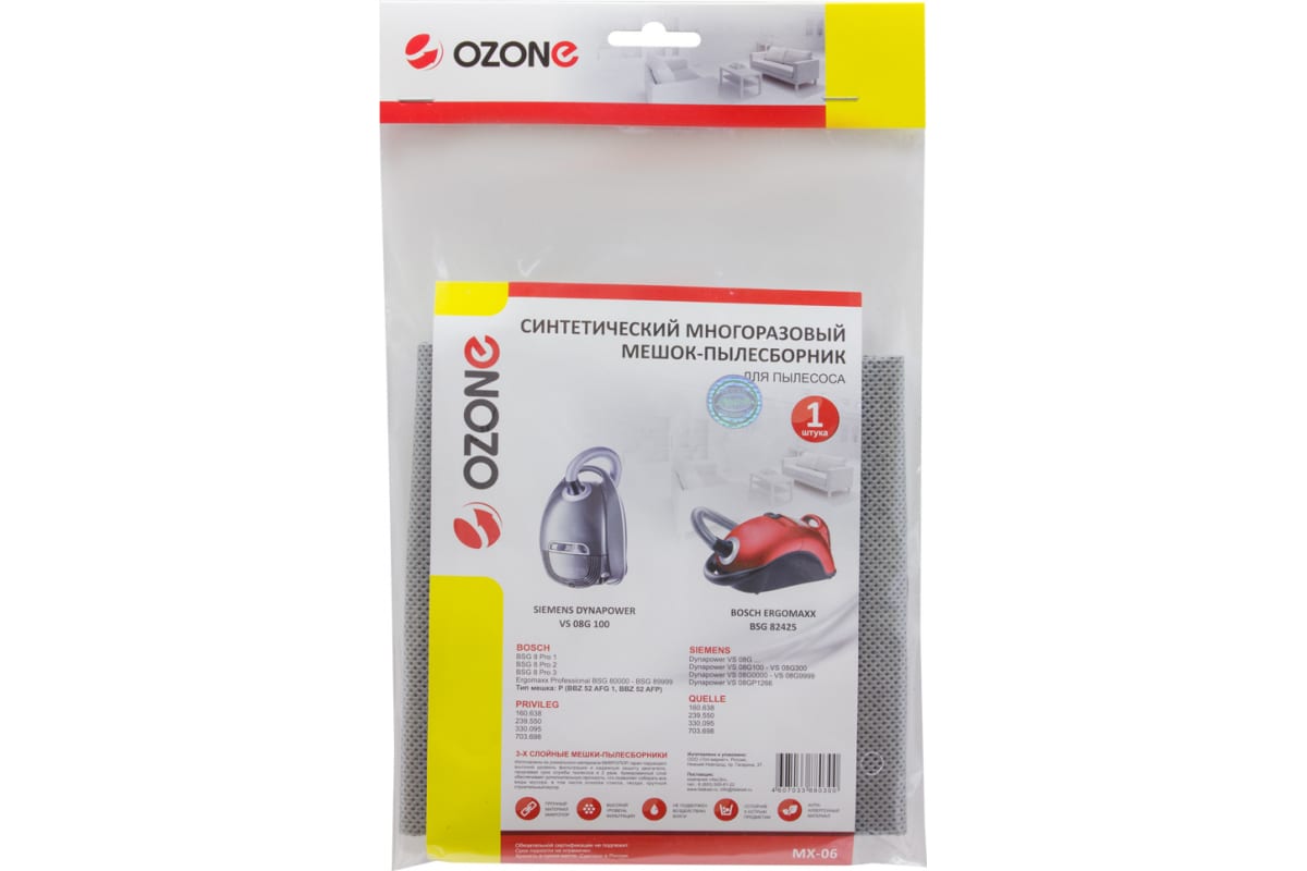 Многоразовый мешок-пылесборник OZONE MX-06 предназначен для пылесосов BOSCH, SIEMENS, QUELLE, PRIVILEG. Изготовлен из синтетического материала, имеет высокую прочность и подходит для многоразового использования.