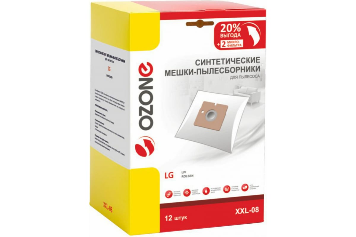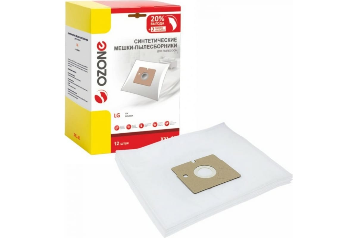 Мешки-пылесборники синтетические для пылесосов LG, LIV, ROLSEN OZONE XXL-08 многослойные 12 шт.