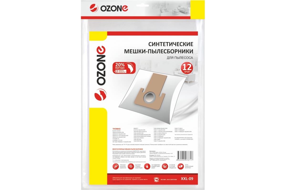 Мешки-пылесборники Ozone XXL-09 предназначены для пылесоса THOMAS TWIN T1, T2, TT.