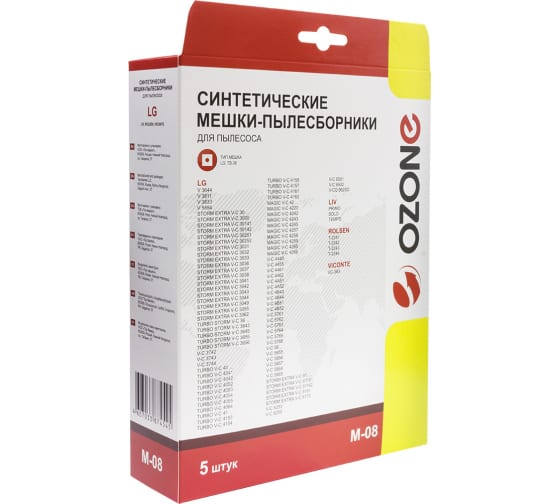Мешки-пылесборники синтетические (5 шт; с микрофильтром) для пылесоса LG OZONE M-08 обладают 100% заполняемостью и выдерживают высокие нагрузки, вплоть до 30 кг. Демонстрируют хорошие фильтрационные свойства и высокую механическую прочность. Применяются для однократного использования. В комплекте - 5 шт.
