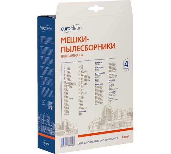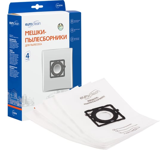 Мешок-пылесборник EURO CLEAN E-07/4 используется в пылесосах LG, CAMERON, CLATRONIC, SCARLETT. Изготовлен из трех слоев синтетических нетканых материалов. Внутренний слой обеспечивает фильтрацию мусора крупной и мелкой фракции. Средний уровень необходим для тонкой очистки. Наружный слой придает прочность всей конструкции. Это одноразовый пылесборник, который заменяют по мере заполнения.