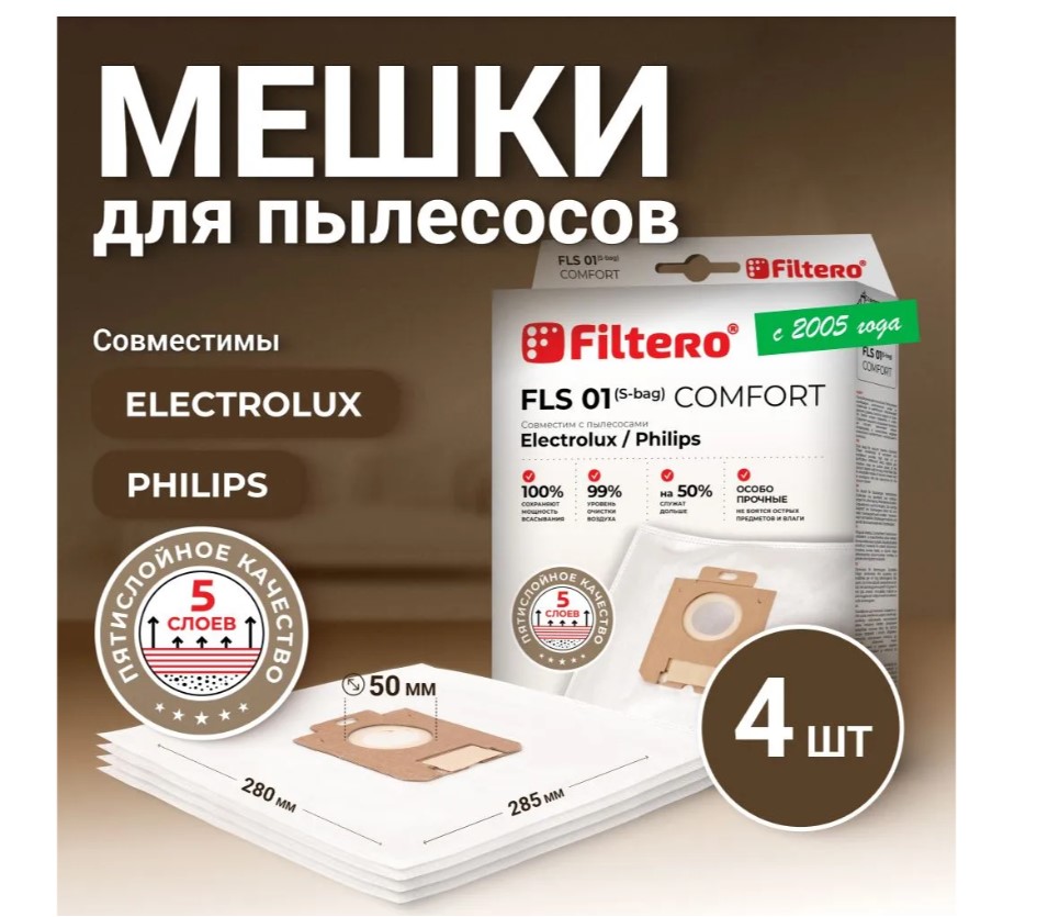 Мешки-пылесборники Filtero FLS 01 (S-bag) Comfort,4 штуки.