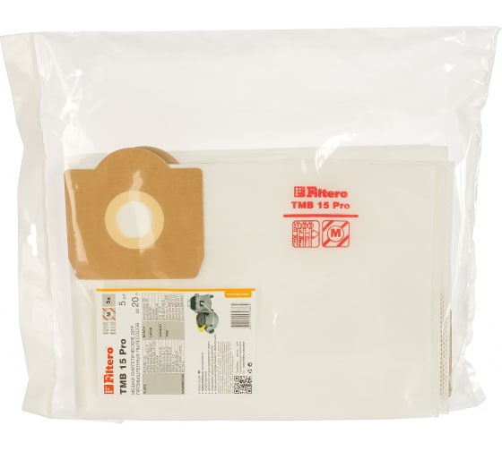 Мешок-пылесборник FILTERO TMB 15 Pro (5 шт; 20 л) 05686 используется с целью тонкой очистки воздуха от мельчайших частиц пыли. Выполнен из трехслойного нетканого синтетического волокна MicroFib, что обеспечивает высокую прочность. Не боится влаги и острых предметов.