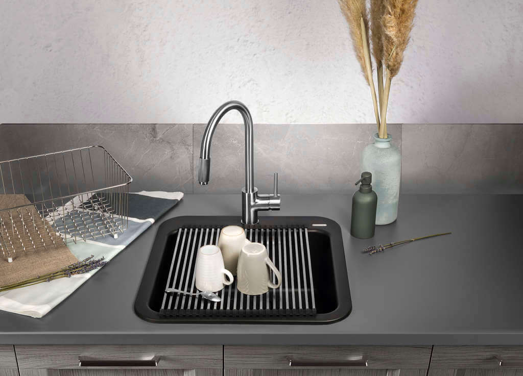 Стильные коврики расстилаются на крыле мойки или на столешнице.
