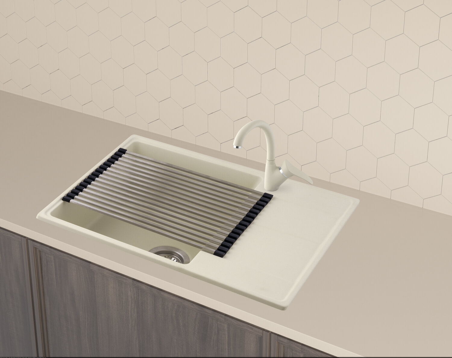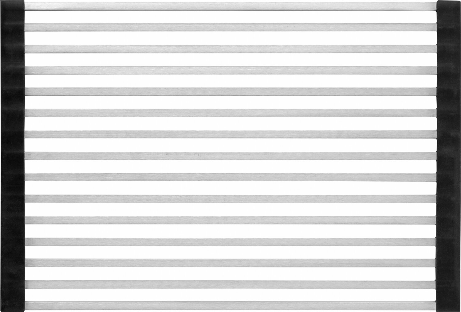 Ролл-мат Weissgauff – удобный и современный аксессуар для кухни, который расстилается на крыле или на чаше мойки, а также на столешнице. На нем можно сушить посуду, овощи и фрукты (без контакта с поверхностью), разделывать и чистить рыбу. Также ролл-мат используется в качестве подставки под горячее, в том числе и на столешнице из искусственного камня. Он легко скручивается в компактный рулон и занимает мало места при хранении. Размер ролл-мата – 440 х 305 мм, он состоит из 15 прутьев с квадратной формой сечения из высококачественной нержавеющей стали марки AISI 304, а также из термоустойчивого силикона