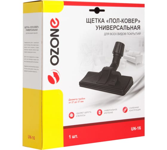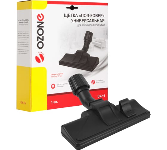 Универсальная щетка OZONE UN-16 подходит для любого пылесоса. Щетка имеет переключатель с щетины на ролики, поэтому с ее помощью можно осуществлять чистку как ковров и ковровых покрытий, так и гладкого пола.
