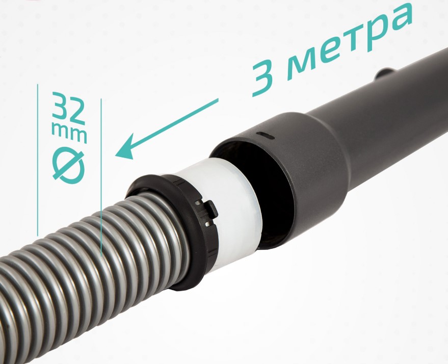 Наличие универсальных колец с защелками по краям шланга позволяет использовать его с большинством пылесосов известных торговых марок.