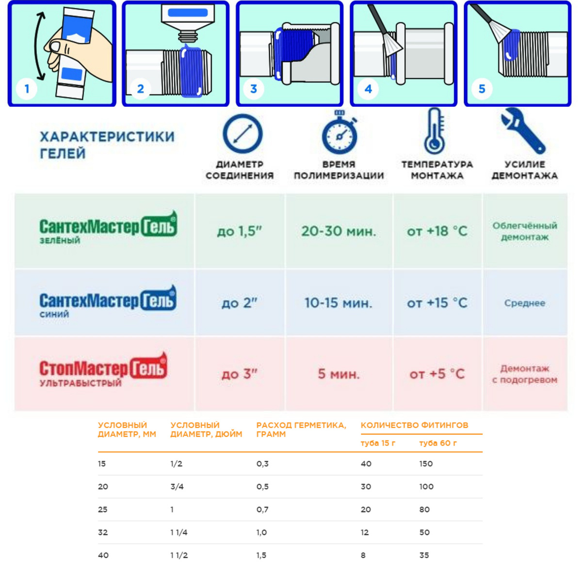 Герметик для сантехники со средней степенью фиксации. Состав используется для герметизации металлических резьб, фитингов и фланцев. Диаметр соединений — до 2″.