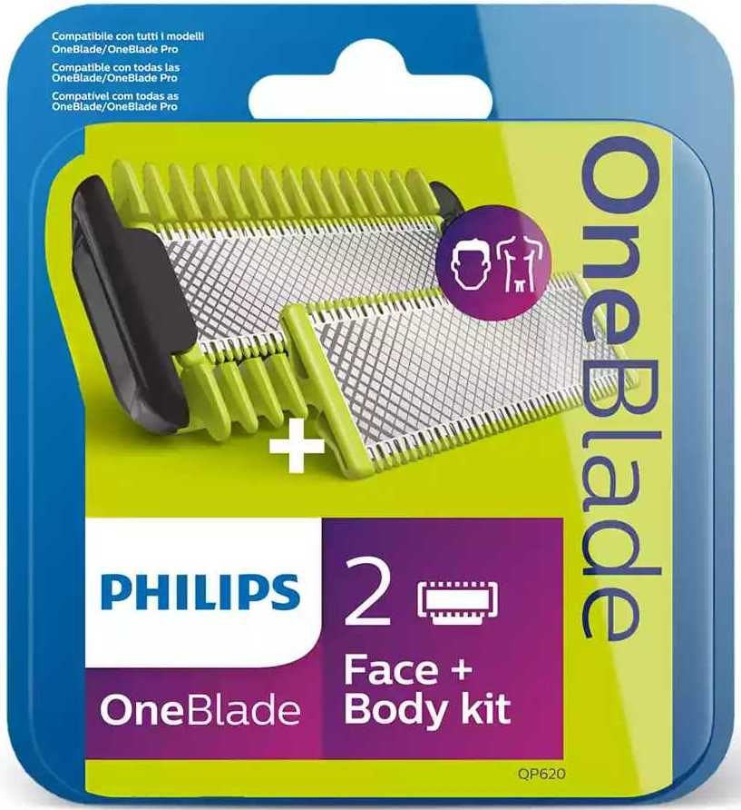 Описание Подравнивает, создает четкие контуры и бреет волосы любой длины. В комплект входит лезвие для лица, лезвие с защитной насадкой для тела, а также гребень для тела. Забудьте об использовании нескольких устройств, ведь OneBlade умеет все.
