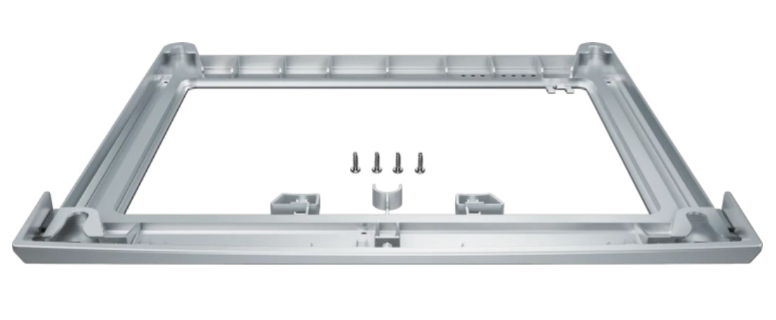 Соединительный элемент без выдвижной полочки для белья Bosch WTZ2751X серебристого цвета позволяет установить стиральную машину на сушильную в колонну.