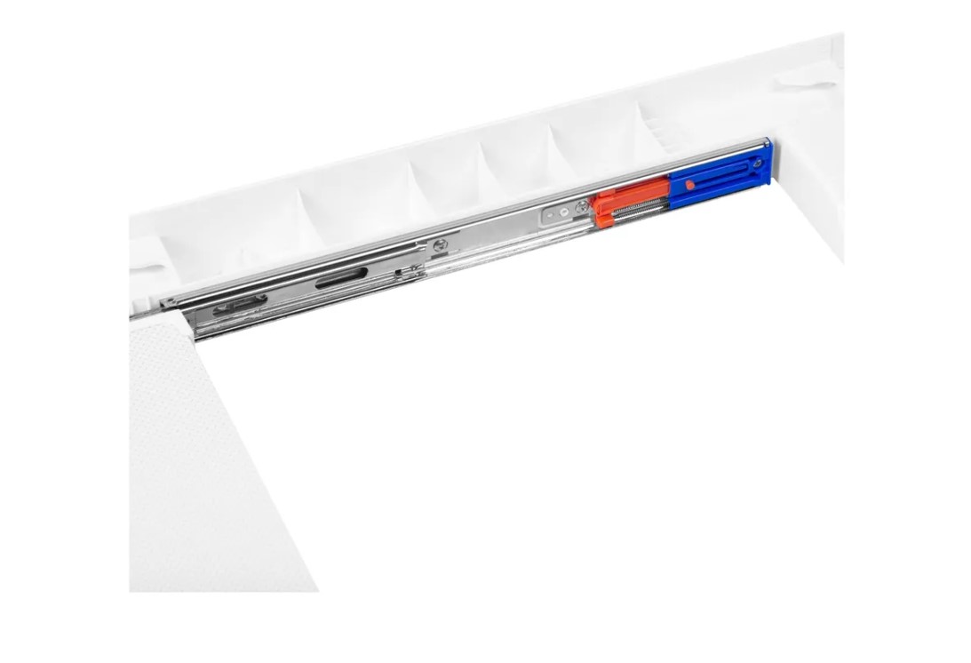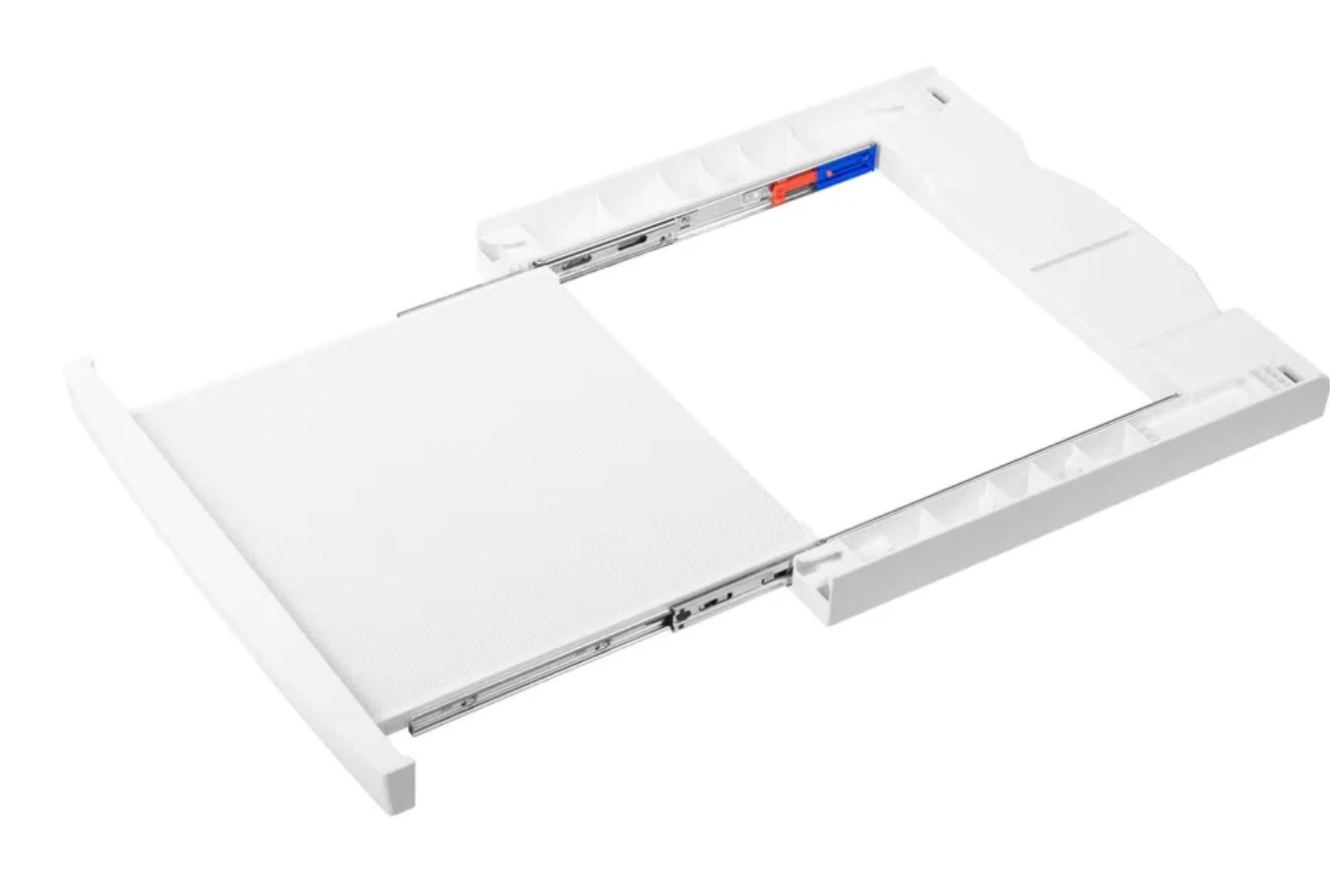 Благодаря выдвижной полке с автоматическими доводчиками больше не придется постоянно наклоняться к корзине с бельем или держать ее на весу при разгрузке сушильной машины, достаточно просто поставить корзину на полку.