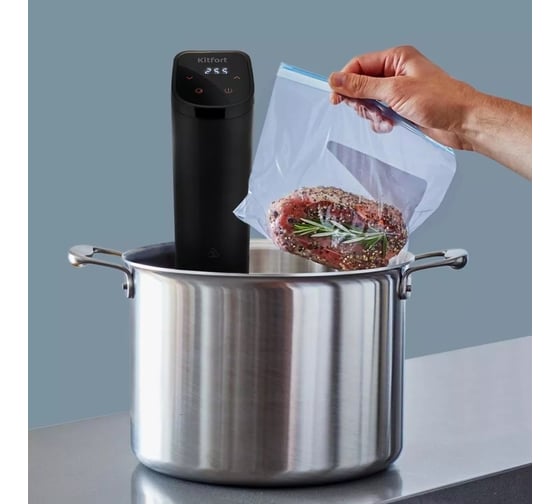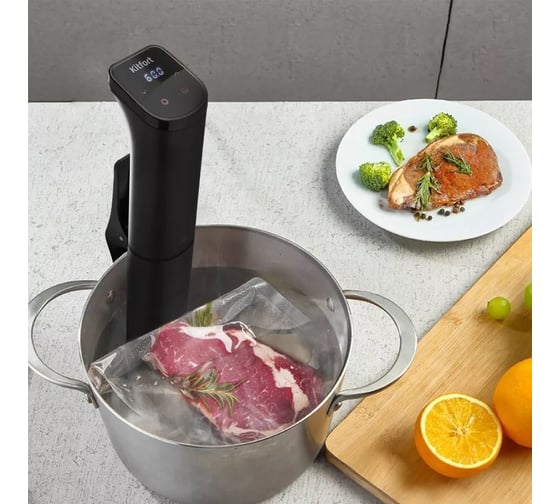 Погружной су-вид КТ-4057 предназначен для приготовления пищи в вакуумных герметичных пакетах, помещенных в чашу с водой. Еда готовится в течение долгого времени при низкой температуре. Блюдо готовится в собственном соку и получается вкусным и сочным.