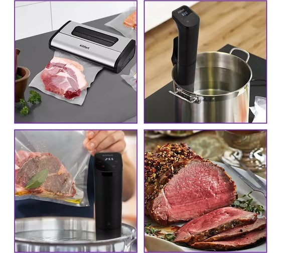 Мясо, рыба, морепродукты, овощи помещаются в вакуумный пакет, медленно томятся при низкой, точно контролируемой температуре и получаются мягкими, нежными и сочными.