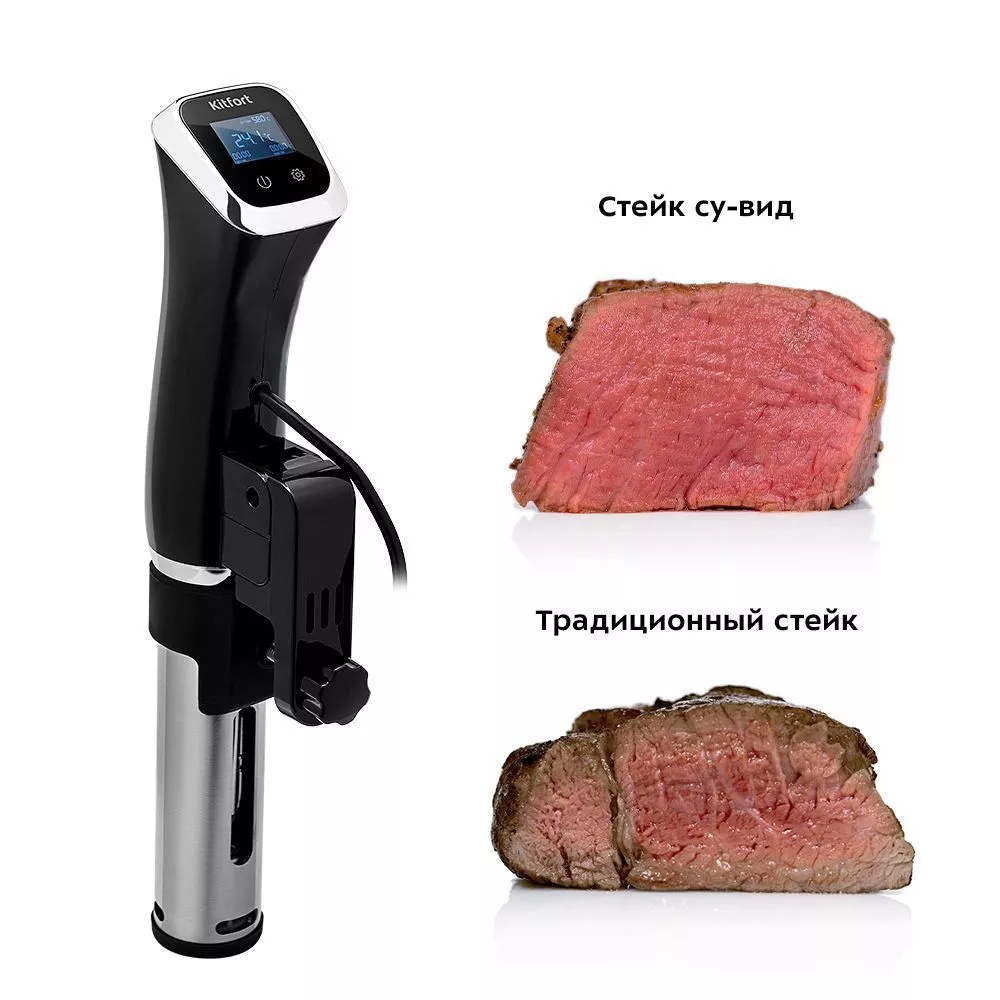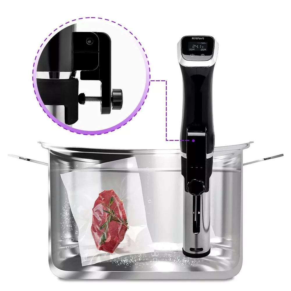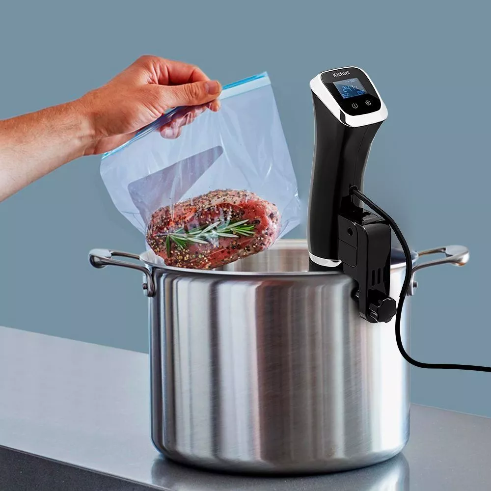 Погружной су-вид КТ—4059 предназначен для приготовления пищи в вакуумных герметичных пакетах, помещенных в чашу с водой. Еда медленно готовится в течение долгого времени при низкой температуре.