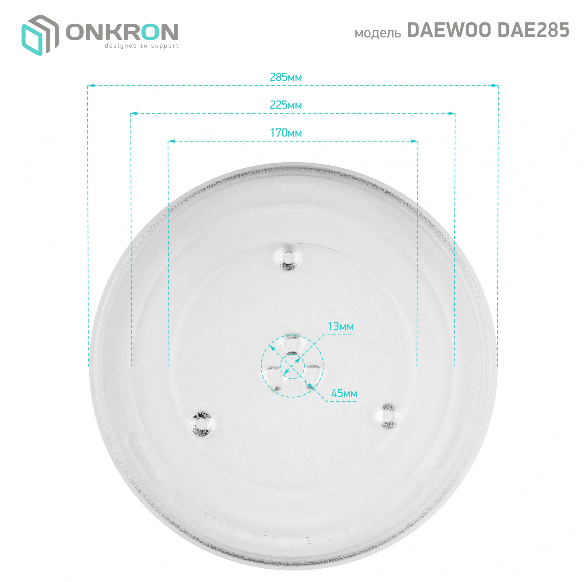 Поддон подходит для большинства СВЧ-печей с диаметром тарелки 28,5 см. Он полностью заменяет оригинальное блюдо бренда с сохранением расположения всех элементов, не уступает по качеству и исполнению. Тарелка подходит для микроволновых печей с глубиной внутреннего пространства от 29,5 см, направляющим кольцом с колёсиками диаметром от 17 до 22 см и коуплером в центре тарелки, приводящим её в движение. Блюдо производится из высококачественного калёного стекла, рассчитанного на высокие температурные нагрузки. Особенным преимуществом изделия является простота в эксплуатации и уходе.