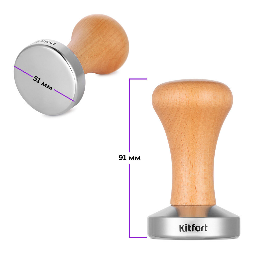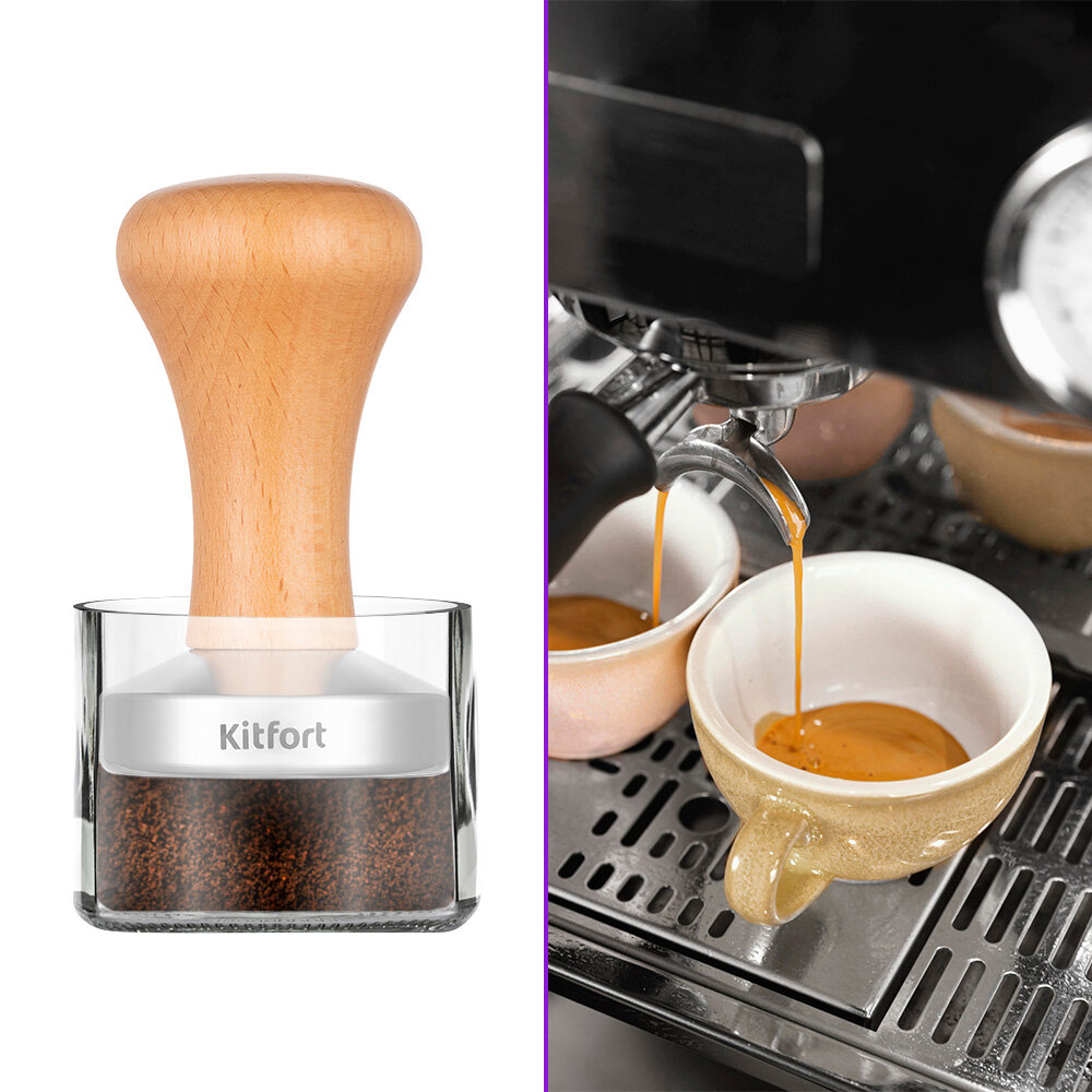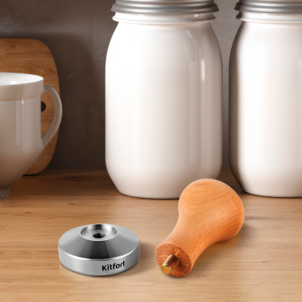 Темпер Kitfort KT-1249 поможет правильно утрамбовать кофейную таблетку.Подходит для кофеварок с диаметром рожка 52 мм.