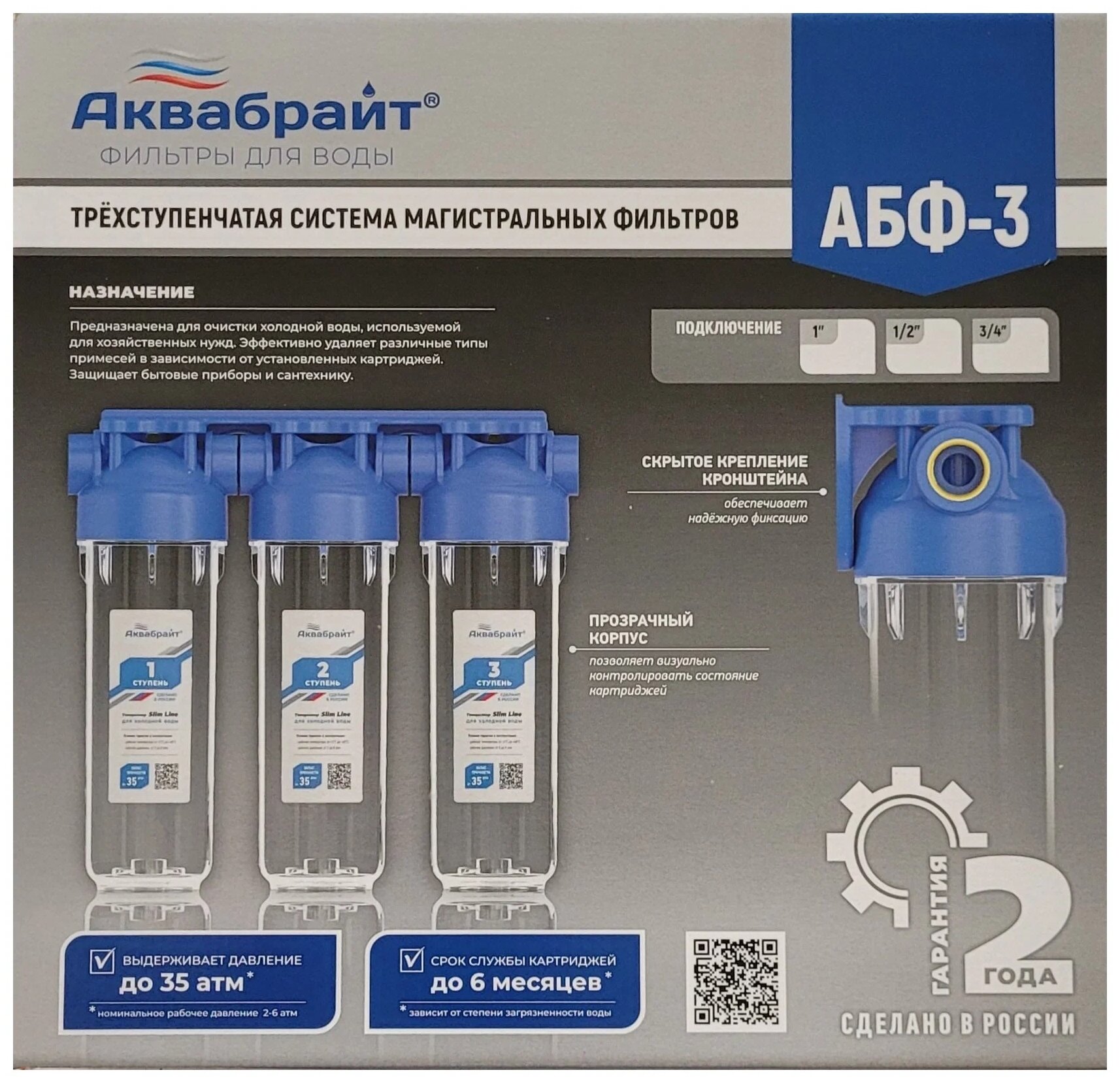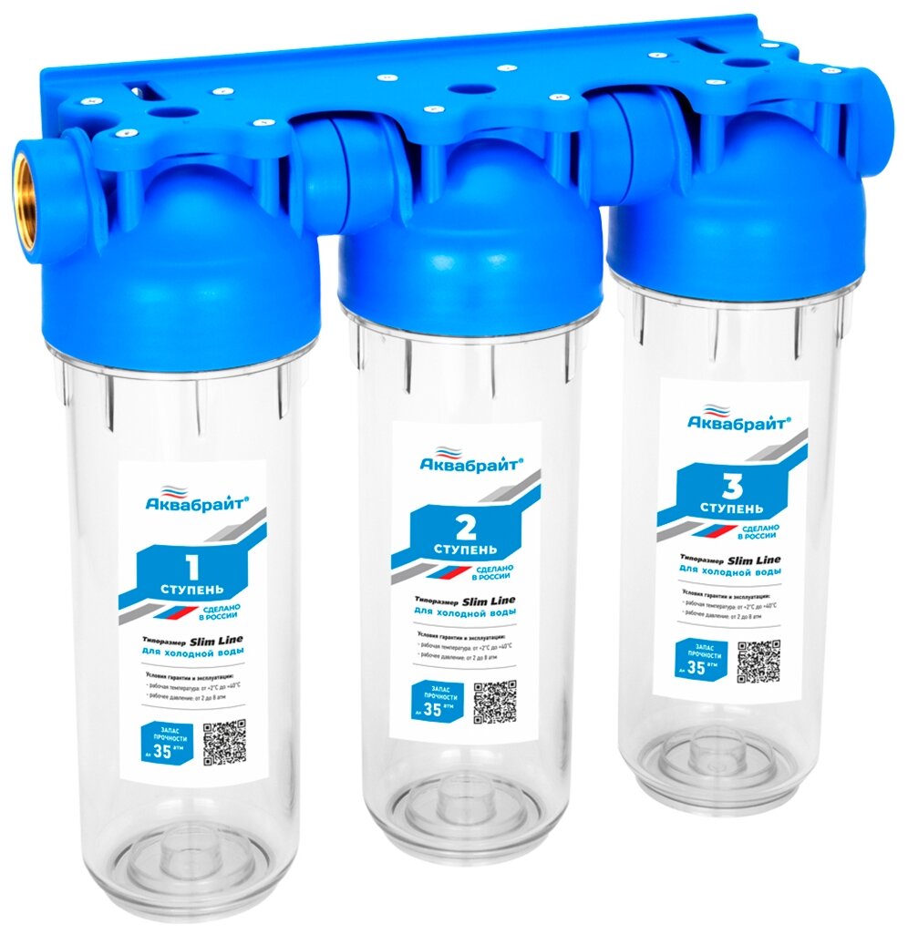 Аквабрайт АБФ-3 1/2, ТРОЙНОЙ Фильтр стандарт SLIM LINE 10