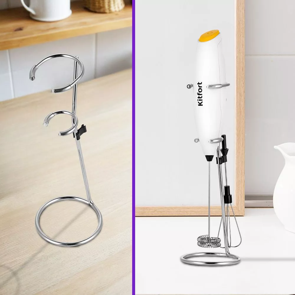 У КТ-7476 входит в комплект подставка с держателем насадки. С подставкой вам не нужно будет думать, куда спрятать венчик для взбивания, так как комплект можно будет компактно расположить на кухне.