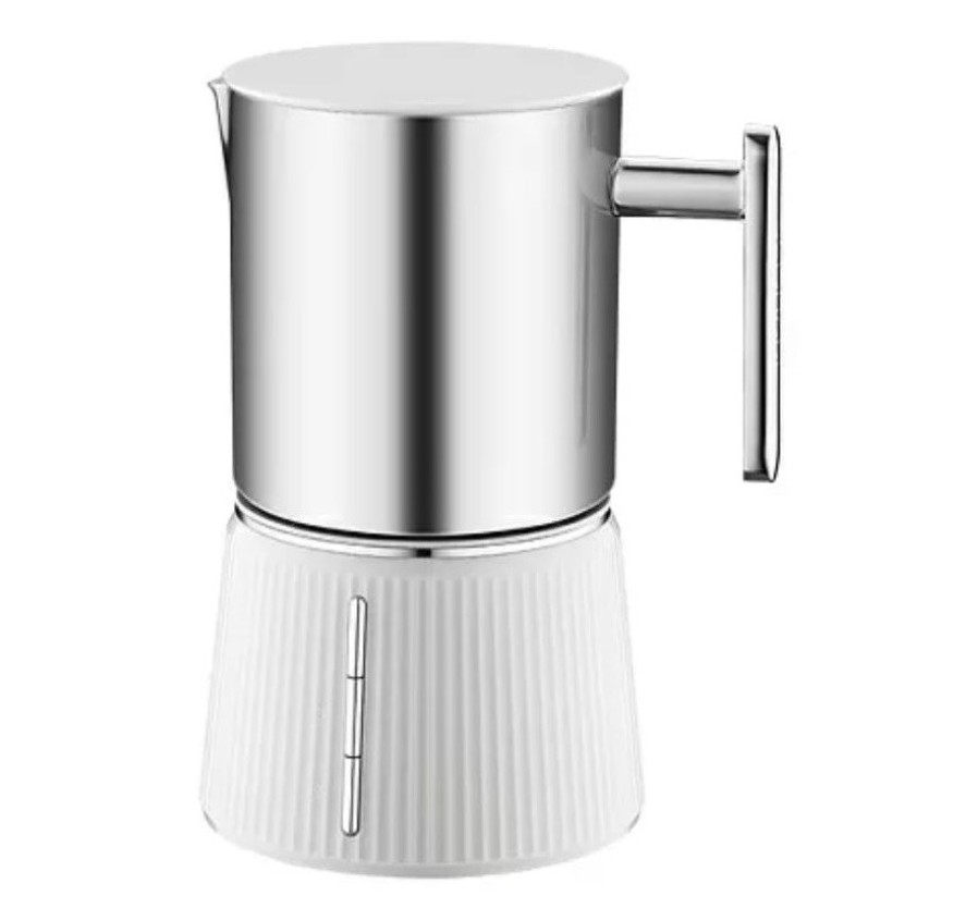 Устройство предназначено для вспенивания и подогрева молока. Оснащается съемной чашей из нержавеющей стали. Максимальный объем жидкости для нагрева – 250 мл, для получения пены – 150 мл. На корпусе находятся механические кнопки управления.