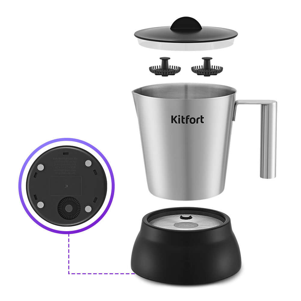 Индукционный капучинатор Kitfort КТ-7156 – простое устройство, которое взбивает пышную молочную пенку всего за несколько минут. С ним вы можете готовить кофейные напитки на базе эспрессо: капучино, латте и латте макиато.