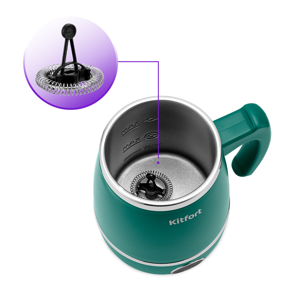 Капучинатор КТ-7269 – это устройство для приготовления молочной пенки для напитков на базе эспрессо: капучино, латте. Достаточно наполнить капучинатор нужным количеством молока и выбрать режим. Через несколько минут горячая молочная пена готова.