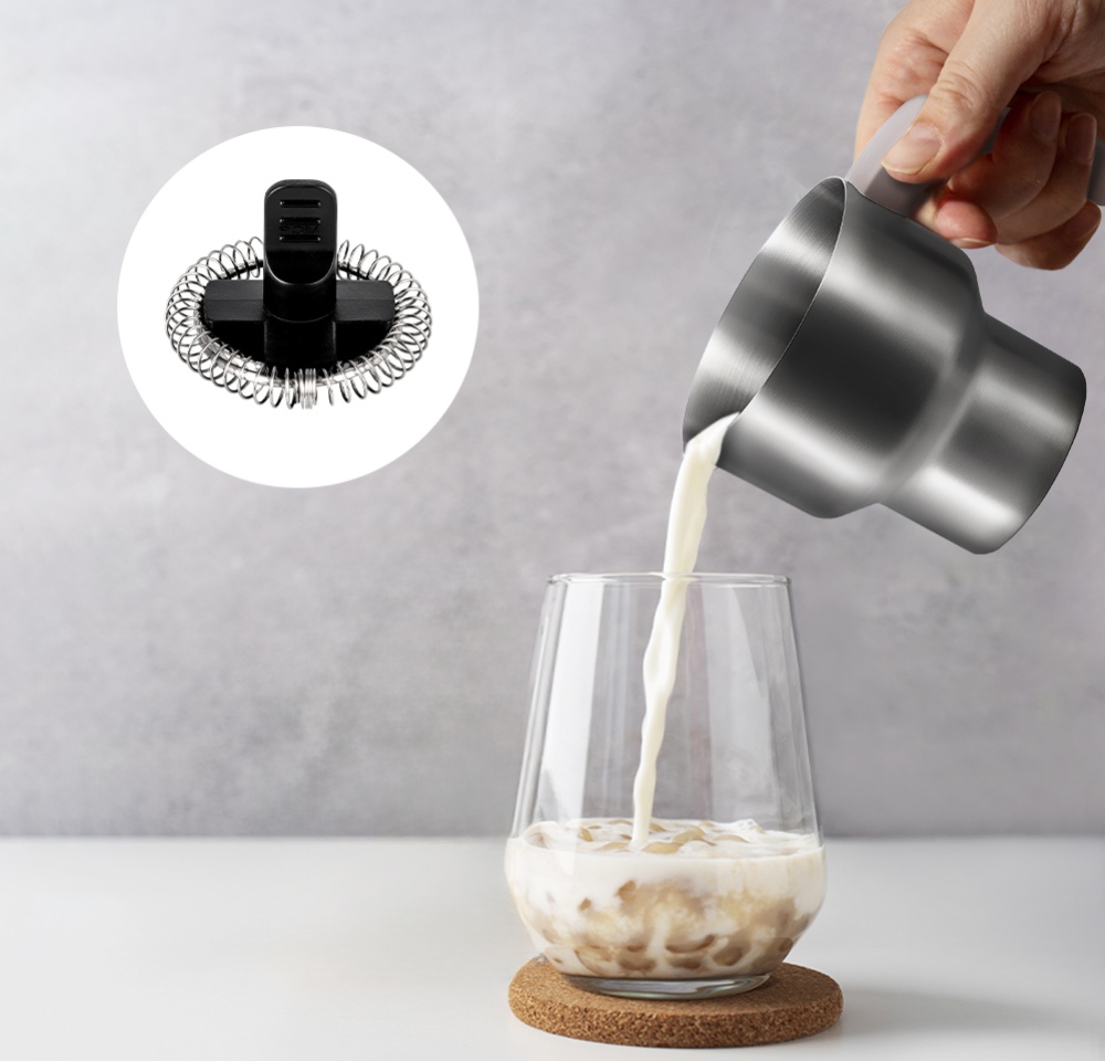 Насадка оснащена пружинкой для вспенивания молока, смешивания и подогрева напитков. Ручка капучинатора пластиковая, не нагревается и удобно лежит в руке.