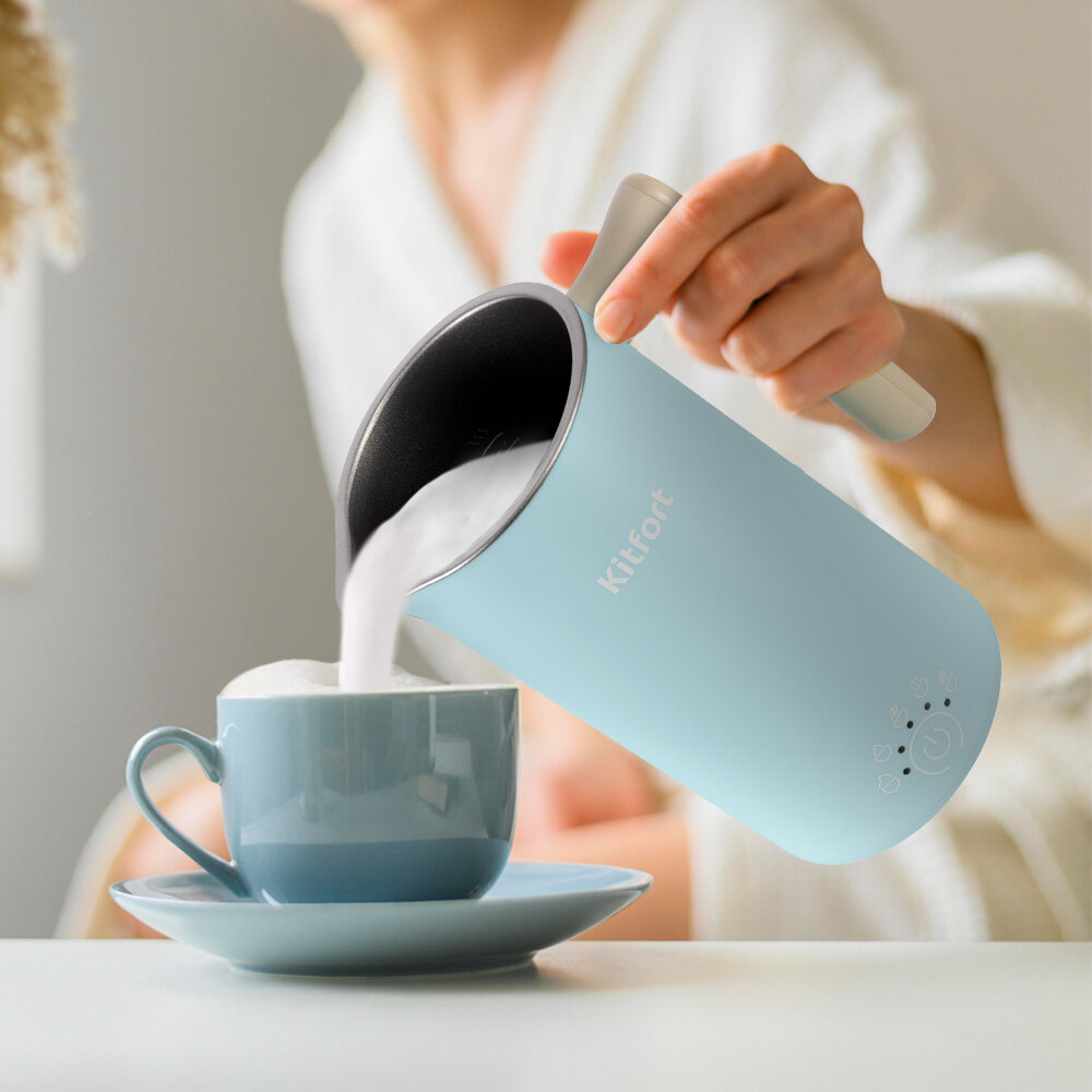Капучинатор КТ-7290 – это устройство для приготовления молочной пенки, используемой для напитков на базе эспрессо: капучино, латте и латте макиато. Прибор выполнен в небесно-голубом цвете подойдёт абсолютно к любой кухне.