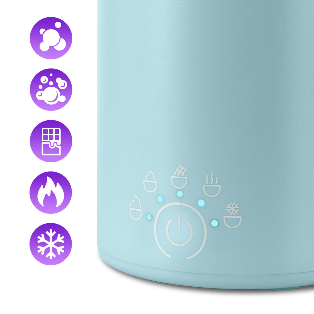 Устройство работает в пяти режимах: смешивание с нагревом, вспенивание без нагрева, горячий шоколад, плотная пенка с подогревом и воздушная пена с подогревом!