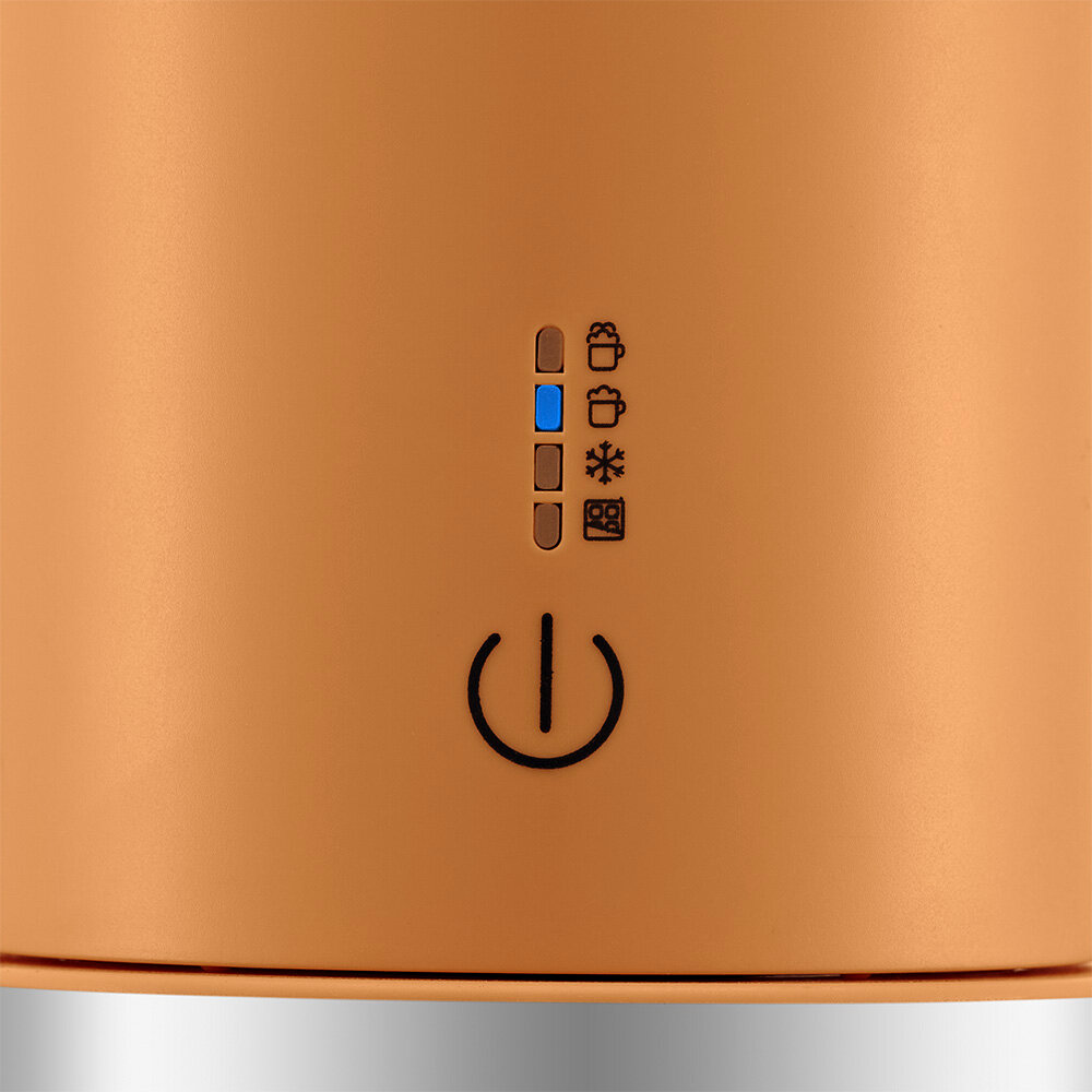 Устройство осуществляется с помощью одной кнопки на корпусе. Прибор работает в четырёх режимах: горячий шоколад, вспенивание без подогрева, плотная пенка с подогревом и лёгкая пенка с подогревом.