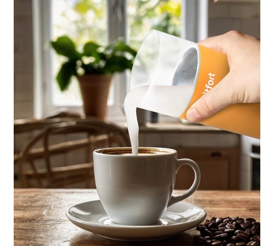 Капучинатор автоматически отключается, когда процесс взбивания или смешивания выполнен. Также вы можете остановить процесс приготовления вручную. Управление осуществляется с помощью одной кнопки на корпусе. В комплекте идет одна насадка с пружинкой. Через прозрачную верхнюю часть корпуса можно наблюдать за процессом приготовления.