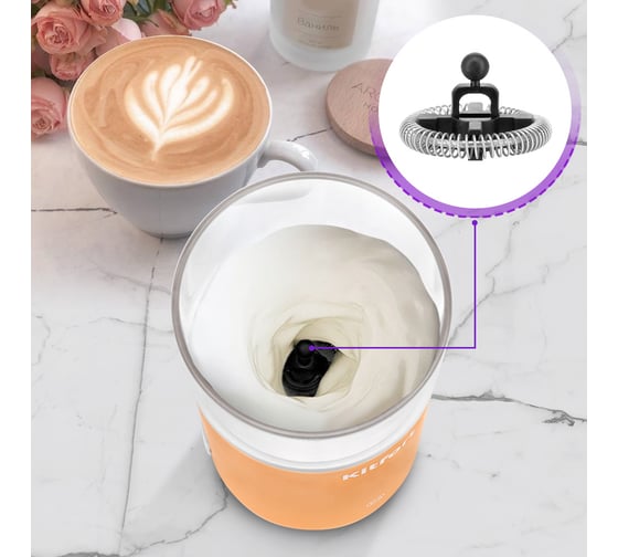 Капучинатор КТ-7464 — это устройство для приготовления молочной пенки, используемой для напитков на базе эспрессо: капучино, латте и латте макиато. Прибор работает в трех режимах: вспенивание с подогревом, смешивание с подогревоми вспенивание без подогрева.