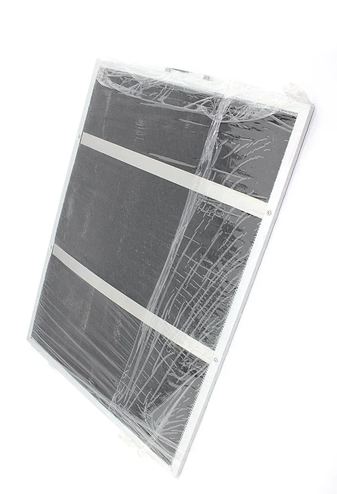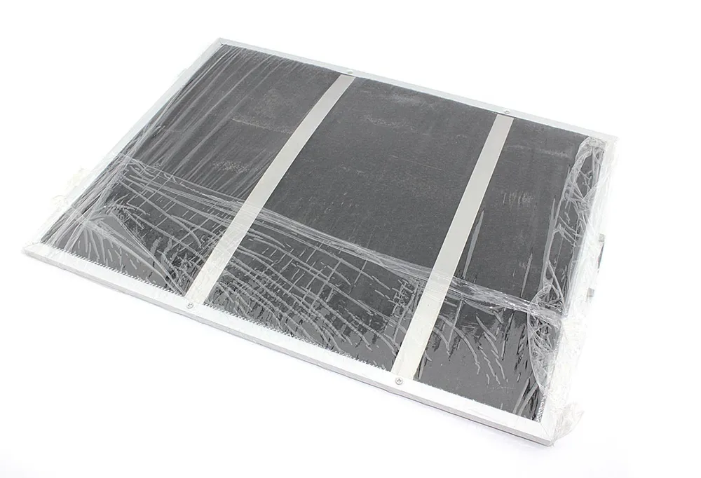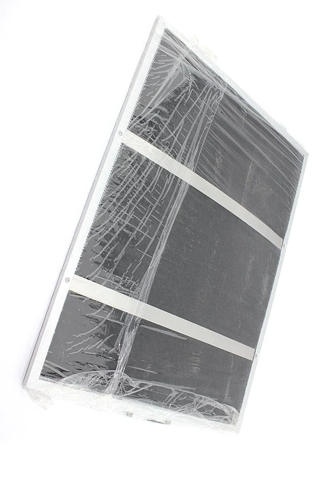 Фильтр имеет размеры 370х280 мм, что делает его совместимым с различными моделями вытяжек Krona. Его конструкция включает несколько слоев алюминиевой сетки, которые установлены в металлическую раму. Это позволяет воздуху проходить через каждый слой, меняя направление, благодаря чему частицы жира оседают на поверхности сетки.