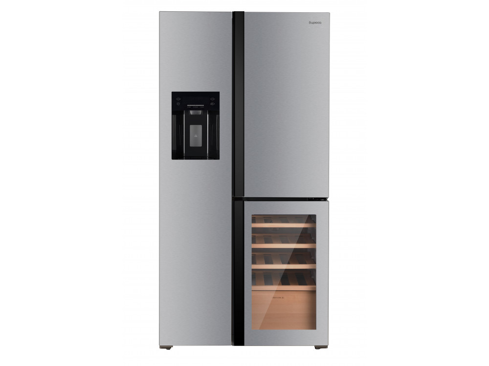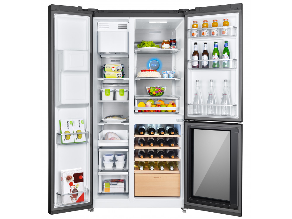 встроенный льдогенератор с функций приготовления холодной воды, колотого льда и льда в кубиках; инверторный компрессор; технология охлаждения Metal Cooling; встроенный винный шкаф