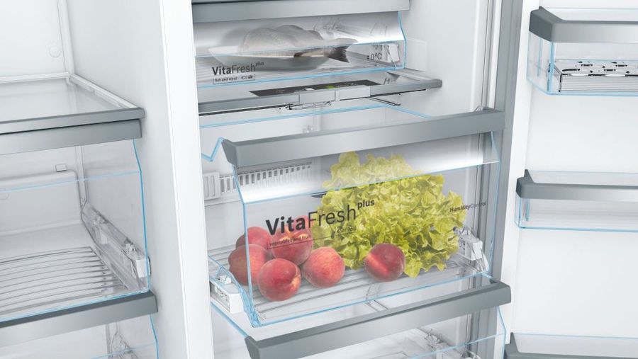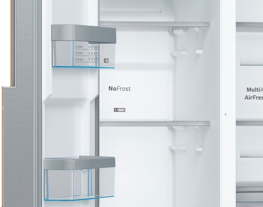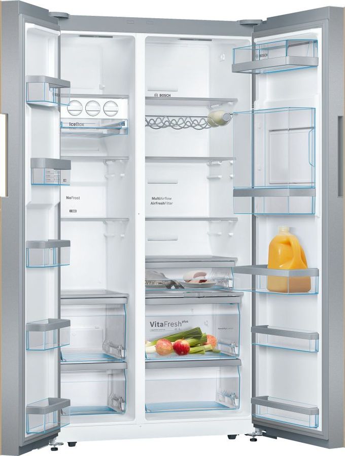 Дополнительно: Система VarioSpace. Режим «Отпуск». Мини-бар. Автоматический доводчик двери. Контейнер-ледогенератор. Подставка для бутылок. Подставка для яиц.