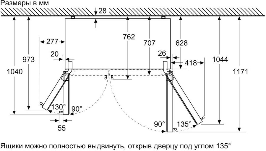 Общий объем холодильника: 616 л